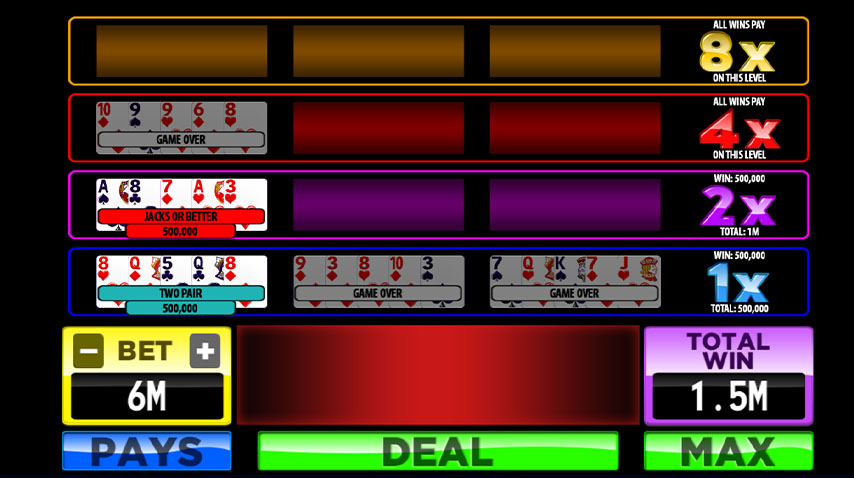 Multi-Play Video Poker™ is a easy-to-play mobile app that allows you to play all of your real casino video poker favorites from anywhere. Multi-Play Video Poker™, Multi-Hand Poker and Classic Poker Machines are all here, featuring Jacks or Better, Deuces Wild, Double Double Bonus Poker and more. With weekly challenges you can hit more royal flushes, collect more credits and have more fun! Download today to get in the action. Multi-Rise Video Poker is a trademark of Leading Edge Design, LLC. Multi-Play Video Poker™ is a easy-to-play mobile app that allows you to play all of your real casino video poker favorites from anywhere. Multi-Play Video Poker™, Multi-Hand Poker and Classic Poker Machines are all here, featuring Jacks or Better, Deuces Wild, Double Double Bonus Poker and more. With weekly challenges you can hit more royal flushes, collect more credits and have more fun! Download today to get in the action. Multi-Rise Video Poker is a trademark of Leading Edge Design, LLC. Multi-Play Video Poker™ is a easy-to-play mobile app that allows you to play all of your real casino video poker favorites from anywhere. Multi-Play Video Poker™, Multi-Hand Poker and Classic Poker Machines are all here, featuring Jacks or Better, Deuces Wild, Double Double Bonus Poker and more. With weekly challenges you can hit more royal flushes, collect more credits and have more fun! Download today to get in the action. Multi-Rise Video Poker is a trademark of Leading Edge Design, LLC.
